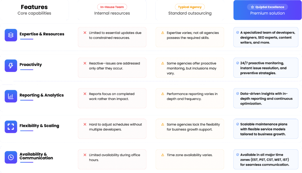 Website maintenance goes beyond simple fixes—it’s about ensuring your site stays optimized, updated, and fully functional to drive business growth. At QuipSol, we don’t just maintain websites; we keep them performing at their best. But what exactly does ‘regular updates’ mean?